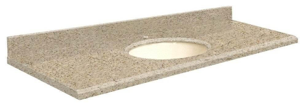 Quartz 61"x22" Vanity Top, Single Faucet Hole, Sorrento Coast, Biscuit Bowl