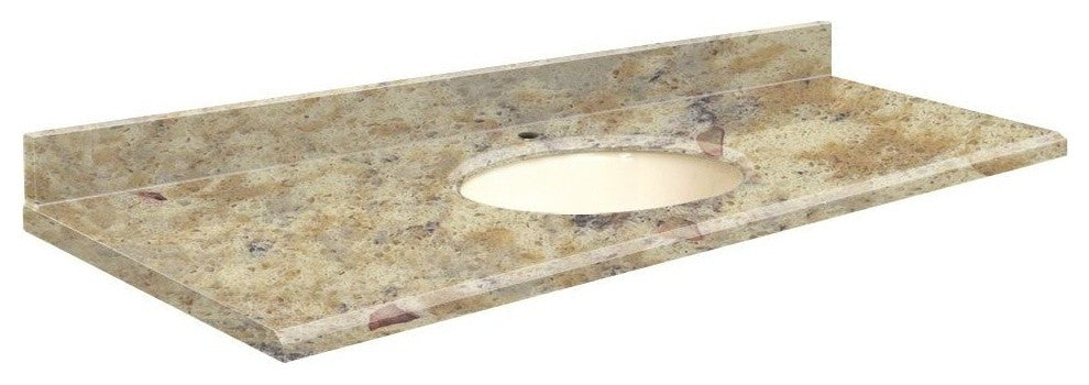 Quartz 61"x22" Vanity Top, Single Faucet Hole, Trail, Biscuit Bowl