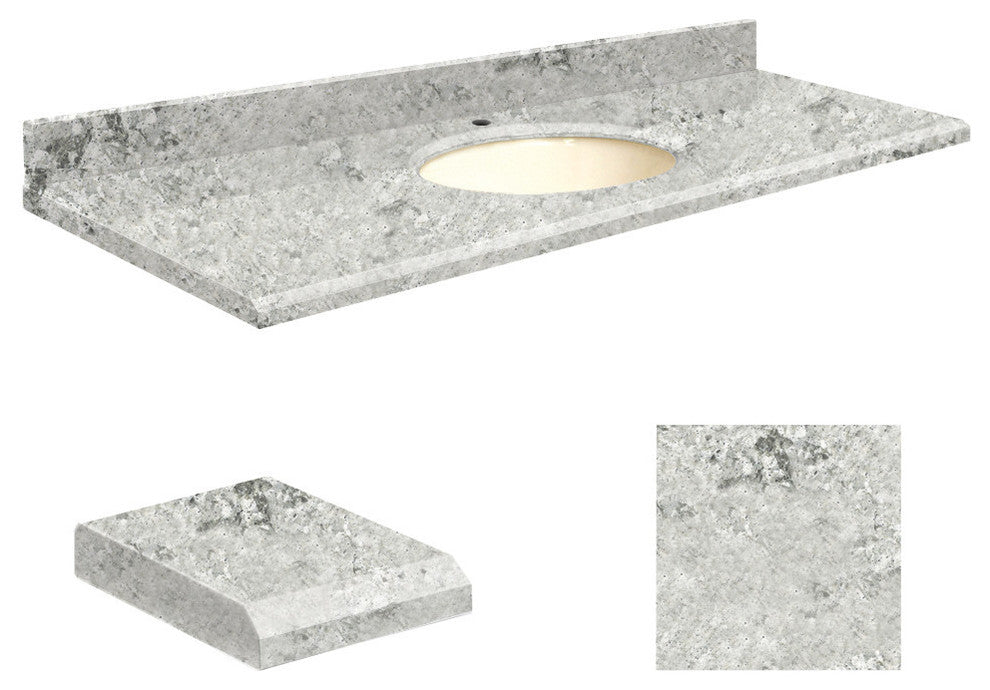 Transolid engineered quartz is produced from 93% quartz under extreme high pressures to yield a top that is hard, stain and heat resistant with a consistent color throughout. Transolid quartz tops never need sealing, polishing or reconditioning and are practically care-free. They are exceptionally hard, making them resistant to cracks, chips, scratches and stains for years of trouble-free beauty. All include an undermount oval china bowl and 4-in loose backsplash.