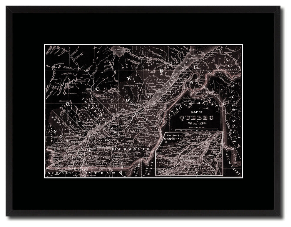 Quebec Montreal Vintage Vivid Sepia Map Canvas, 16"x21"