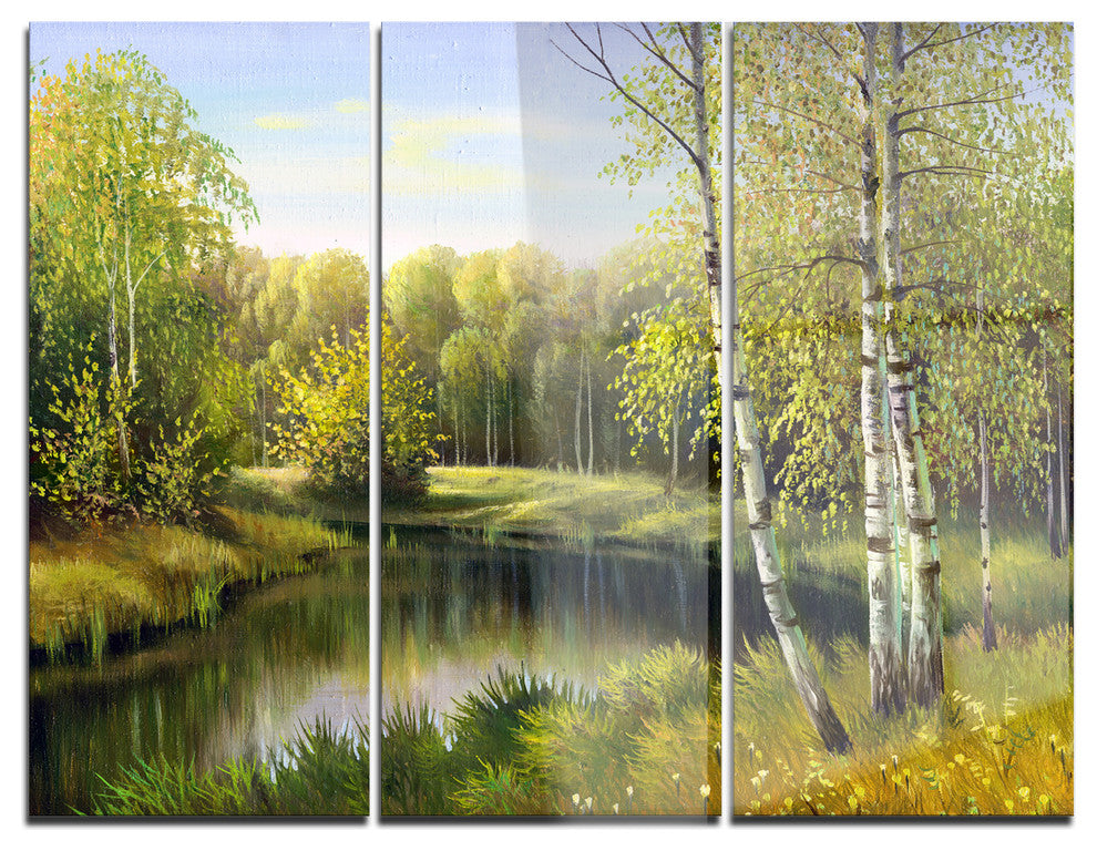 "Quiet Autumn River" Glossy Metal Wall Art, 3 Panels, 36"x28"