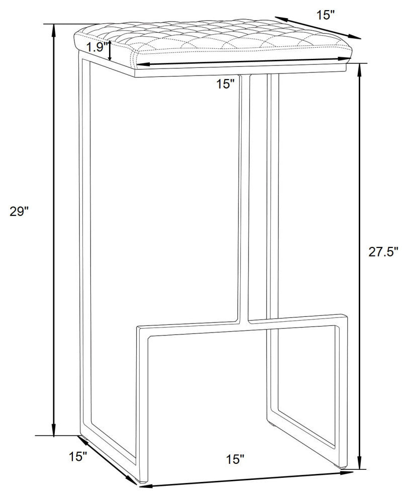 Item Features: .The barstool features a quilted leather seat with a textured diamond-shaped stitching pattern, offering a sleek and refined aesthetic. The compact size allows versatile placement in various spaces, including kitchen counters, home bars, or commercial environments..The barstool is designed with a leather seat and 1.9-inch thick padding, providing a comfortable surface for extended seating. The sturdy construction ensures the seat retains its shape and resists wear over time, offering lasting durability. The generous padding and supportive design enhance overall comfort, making it suitable for various uses..The sled base design incorporates a durable gold metal frame that evenly distributes weight, ensuring stable support and a weight capacity of up to 265 lbs..The integrated footrest provides ergonomic support by allowing a comfortable resting position for the feet. Its sturdy design enhances overall seating comfort, offering a practical feature for extended use..The lightweight construction ensures the barstool is easy to lift and reposition, offering flexibility for rearranging seating spaces. Its design makes it practical for frequent movement while maintaining durability..The non-slip rubber pads on the sled base protect floors from scratches and keep the barstool stable. They provide secure contact with various surfaces, making the barstool reliable and safe to use..The barstool arrives fully assembled for immediate use. This ready-to-use design eliminates the need for additional setup, offering convenience and practicality.Item Dimensions:Overall: 29" H x 15" W x 15" DCushion Thickness 1.9"Seat to Footrest 19" x Floor to Footrest 10.6"Leg Height 27.5"Item Weight: 10 lbs.Item Description:Experience modern sophistication with the LeisureMod Quincy Leather Barstool, featuring a quilted leather seat with 1.9-inch thick padding for unmatched comfort and durability. The gold metal sled base provides sleek stability, while non-slip rubber pads protect your floors. Lightweight construction allows effortless repositioning, and the integrated footrest ensures ergonomic support for extended use. Designed for versatility, this fully assembled barstool fits perfectly in kitchen counters, home bars, or commercial spaces. Elevate your space with this stylish, functional seating solution today!