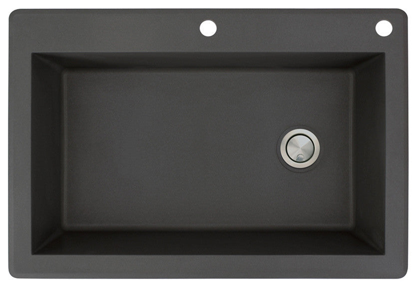 Radius 33" silQ Granite Drop-in Single Bowl Kitchen Sink with 2 Holes in Black