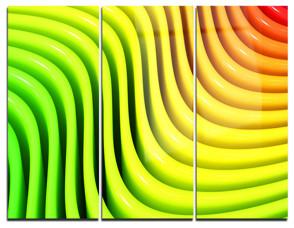 "Rainbow Colors Wave" 3D Digital Metal Wall Art, 3 Panels, 36"x28"