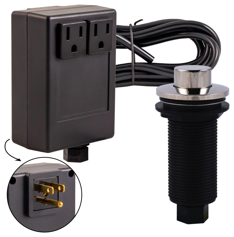 Raised Button Disposal Air Switch & Dual Outlet Control Box In Oil Rubbed Bronze, Polished Nickel