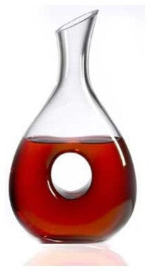Named after the unique form in ancient Greece, the Ravenscroft Crystal Omega Carafe creates a dramatic presentation when wine surrounds the omega shape. The Omega Carafe offers a comfortable grip for easy and effortless service, while the elegant spout and stopper makes it look first-class. This crystal decanter is handcrafted in Europe and made from the most brilliant 100% lead-free crystal. The Omega Carafe is the most elegant way to serve water, wine, and other beverages in your home. Handmade. Lead-free. Hand wash only. Item No.: W0844 | Height: 12" | Width: 6.75" | Capacity: 28 ounces