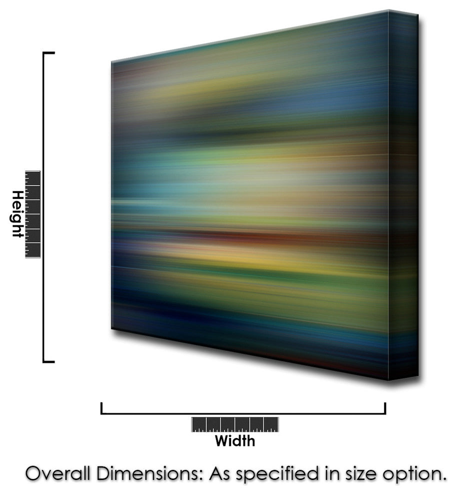 A mod, cosmic horizon or interstellar landscape is characteristic of Ready2HangArts latest collection Blur Stripes. These celestial works compose an austere series featuring a color palette compatible with most every home decor style and taste. ''Blur Stripes'' is a vivid melange of color; a blue and green setting featuring gold and brown tinges. Nurture the cohesive design within your space through a tailored, Blur Stripes canvas art piece; experience your interior design dreams borne.