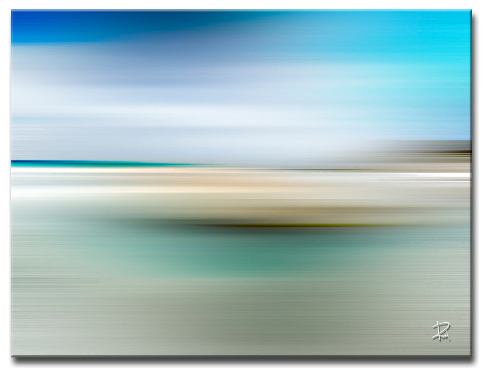 A mod, cosmic horizon or interstellar landscape is characteristic of Ready2HangArts latest collection Blur Stripes. These celestial works compose an austere series featuring a color palette compatible with most every home decor style and taste. Blur Stripes XII is a dreamy abstract landscape, aquamarine and a sandy beige cling together and ultimately fuse, elucidating a beautiful beach scene. Nurture the cohesive design within your space through a tailored, Blur Stripes canvas art piece; experience your interior design dreams borne.