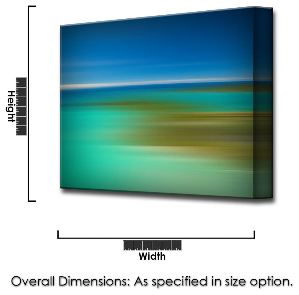 A mod, cosmic horizon or interstellar landscape is characteristic of Ready2HangArts latest collection Blur Stripes. These celestial works compose an austere series featuring a color palette compatible with most every home decor style and taste. ''Blur Stripes XXI'' has the essence of an aquatic horizon with tropical tones; the clear blue skyline inspires endless serenity. Nurture the cohesive design within your space through a tailored, Blur Stripes canvas art piece; experience your interior design dreams borne.