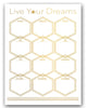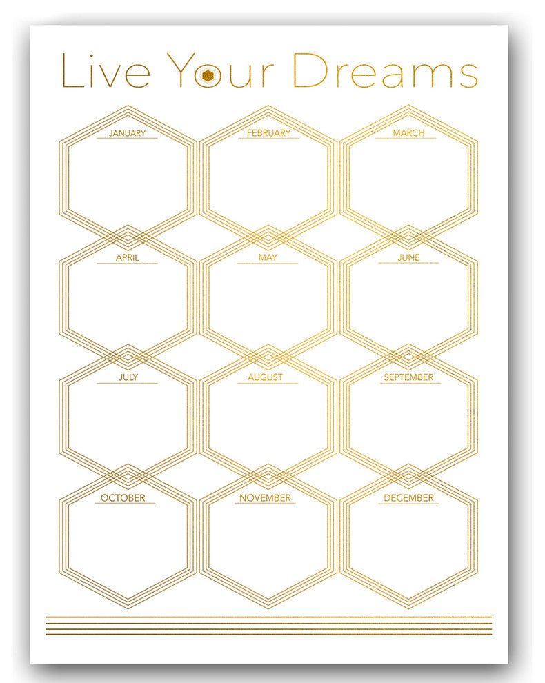 Finally, a reusable weekly calendar to complement your decor! With perfect space for planning your Days, and even write notes, Ready2HangArt Glam "Live Your Dreams" Dry Erase Monthly Calendar in White on ArtPlexi will help you get organized! Dry Erase Marker Included. Frameless and ultra-modern... ArtPlexi really brings images to life; a guaranteed talking point with visitors. The surface is clear polished and adhered precisely to the fine ink print allowing the color and metallic attributes to transcend through the reflective nature providing a great depth of field. The rear hanging system is only visible at an angle, and allows the ArtPlexi to appear as floating on your wallcreating a sleek statement. Brand: Ready2HangArtStyle: Glam Monthly WhiteModel No. CAL008A30 inches High x 20 inches Wide x 1.5 inches deepInstructions: To clean, use a dry eraser or a micro fiber cloth with Alcohol solution.Ready2HangArt is an American small business, dedicated to enhancing Home Decor with innovative designs, and locally made products at a competitive value. Proudly Made in America.