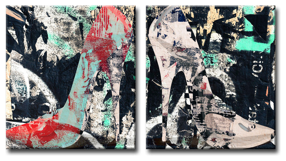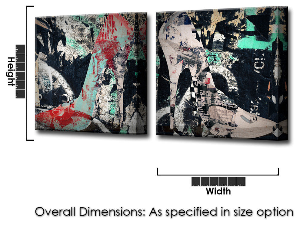 Fashion throughout the ages meets Street Style in Mini Series Urban Fashion by Ready2HangArt. Adorn your walls with these inspired decorative high fashion pieces; bringing a satisfaction of todays fashion desires with an edge to your space. Arouse your room with this fashionable show stopper ?Urban Fashion XIX''. The overlapping multi color layers make for a fun flirtatious scene created by the high healed shoes standing in the fore front.