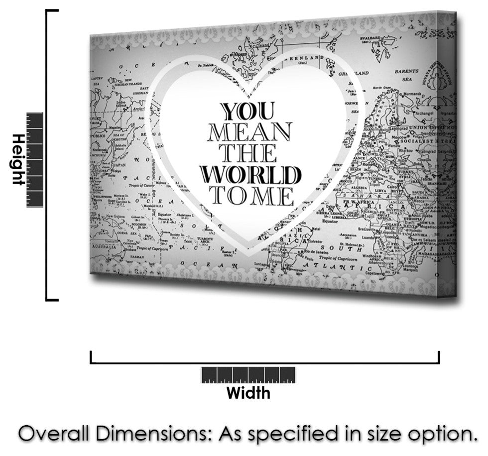 Head over heels in love or just like to express some kindness? Grace your space or gift a friend, relative, or sweetheart on a special day such as Valentine''s Day with unique canvas art. You can travel the globe looking for love, but there is no map to my heart; can''t you see ''You mean the World to Me''. Ready2HangArt is a vertical American art firm seeking to enhance people''s surroundings with innovative designs, extraordinary quality, and unparalleled value. Proudly ?Made in America''