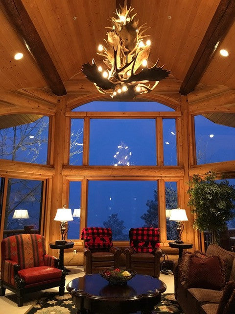 Real Antler Moose, Mule Deer Cascade Chandelier Light