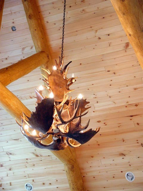 Real Antler Moose / Mule Deer Cascade Chandelier (48-52"D x 52-56"H), 20 Light Sockets, 6 feet of rustic bronze chain.Handmade in North America using top quality naturally shed real antlers. Sockets are made to resemble real antler, each socket rated up to 60 Watts. Comes balanced and ready to hang. Frosted Bent Tip Candelabra Bulbs included. Certified in U.S & Canada (CSA listed to comply with UL 1598)