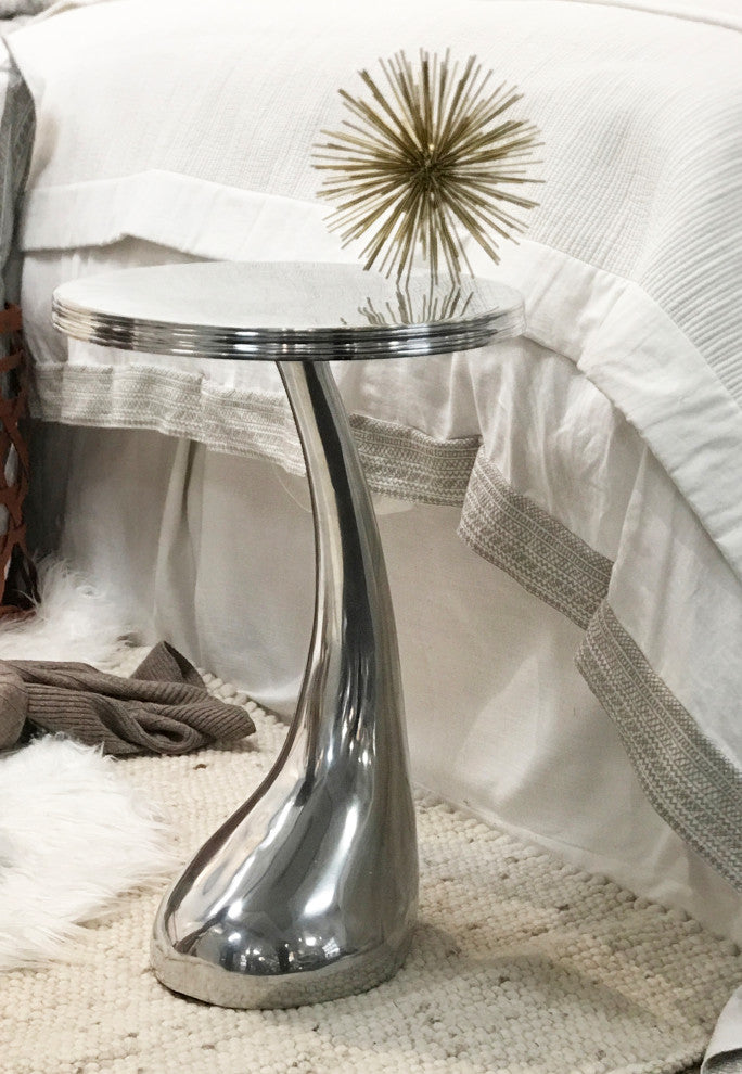 Functional as well as decorative, the Recodo Curve Foot Table is a lovely addition to your home. Functioning as a small side table or a unique ottoman, this piece is made with aluminum and boasts a polished finish. Featuring a single tapering leg sitting on an asymmetrical base, this table is sure to make a statement.