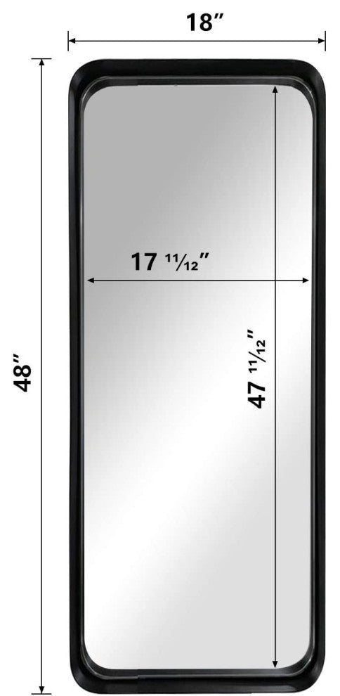 18"X48" bathroom mirror for wall with four round corners design, safe for people to use. Our rectangle bathroom mirror with a black matte polished metal frame. Modern industrial style black metal thin mirror frame can perfectly match most room styles ideal for your bathroom, home, hair salon, also can be used in bedroom or closet. Our rectangular wall mirror has two rows of hanging holes, which can be hung horizontally and vertically. Our wall mirror use 5 mm thickness cooper free sliver mirror, with 1.5"� sturdy metal frame, easy to hang, easy to hang, convenient, and safe handling. A high-strength explosion-proof film is attached to the back of our bathroom mirror, instead of the ordinary MDF backplane. If you hang the mirror in the bathroom, you can isolate the water source and there will be no rust spots on the mirror surface. There is an electroplated frosted coating on the metal frame around the mirror, which will not rust while maintaining its beauty.