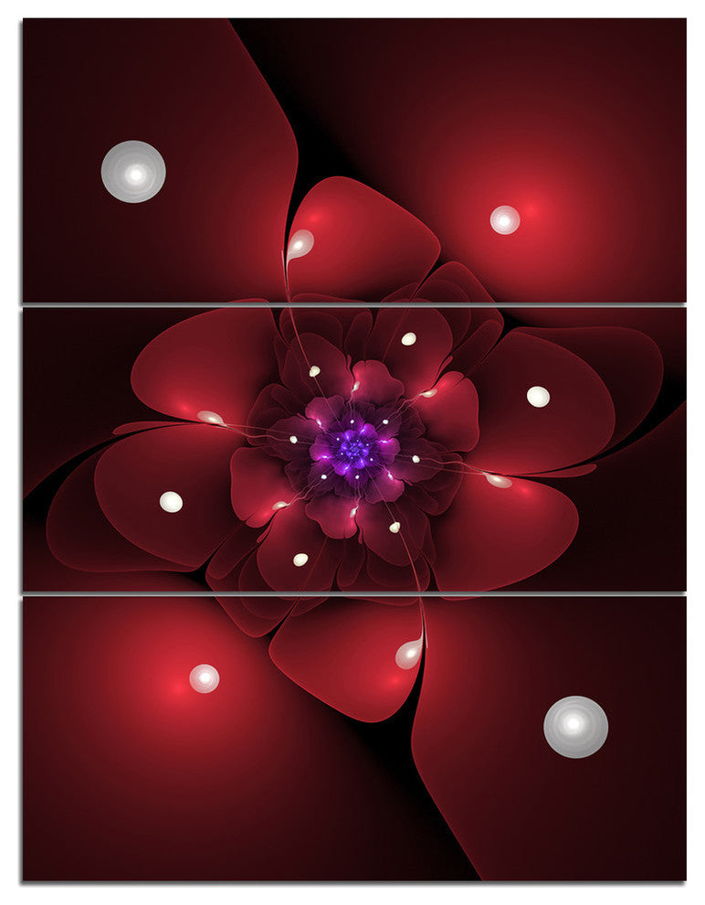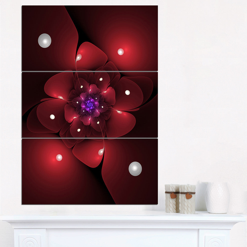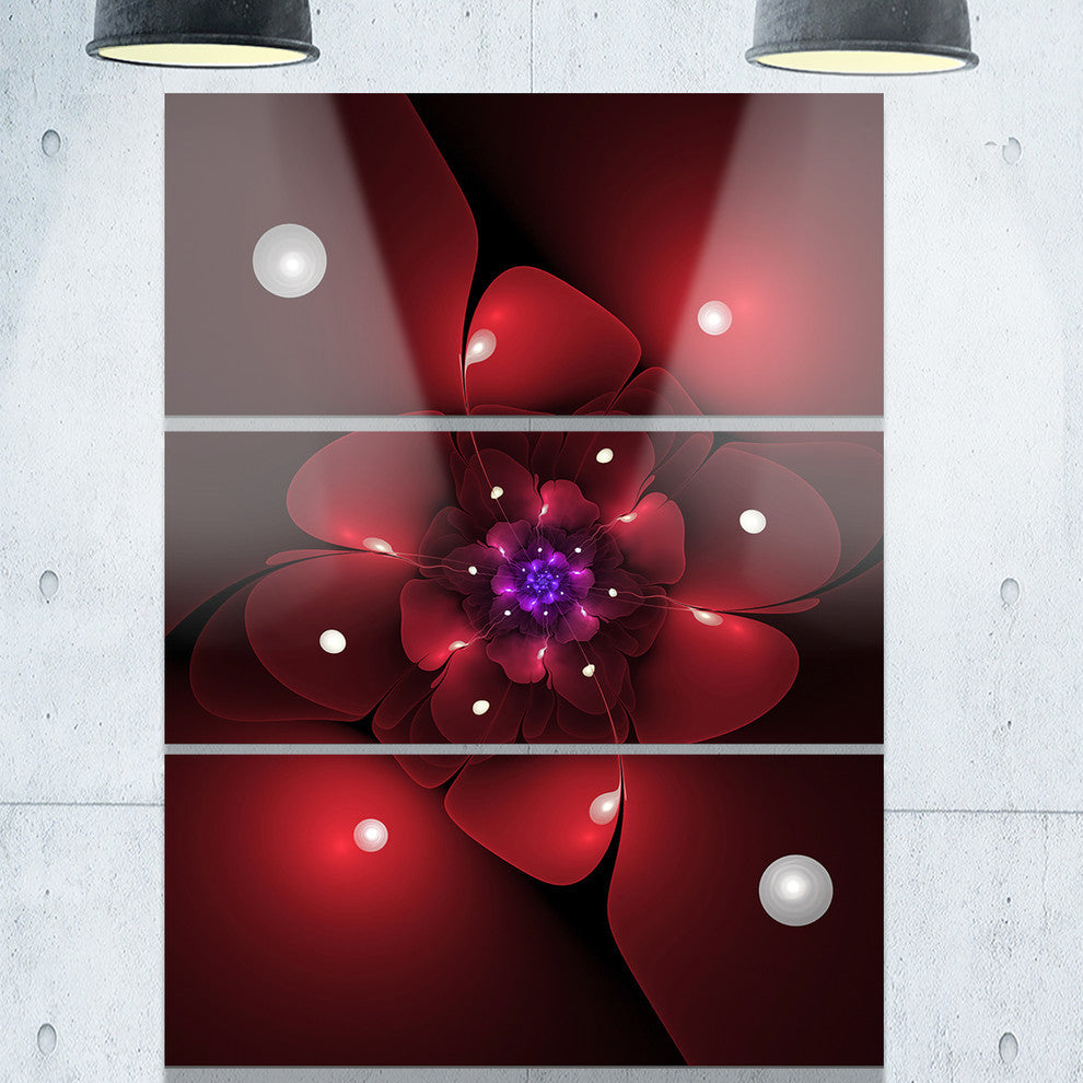 "Red Fractal Flower With Illumination" Metal Wall Art, 3 Panels, 28"x36"