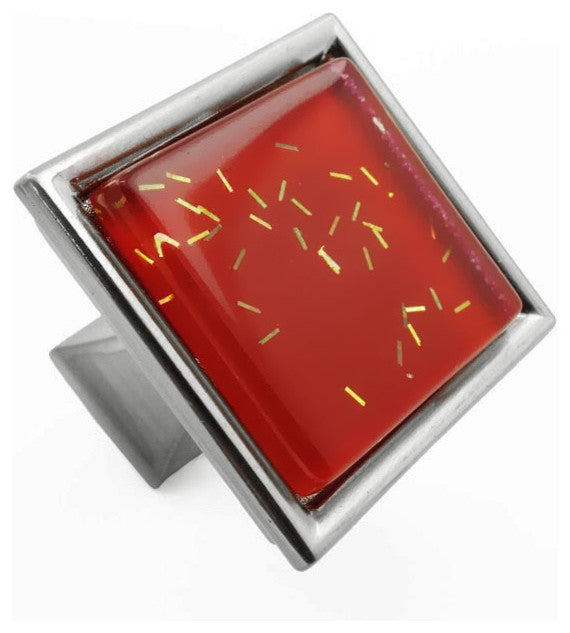Red Iridescent Comet Crystal Glass Brushed Nickel Madison Classic Knob