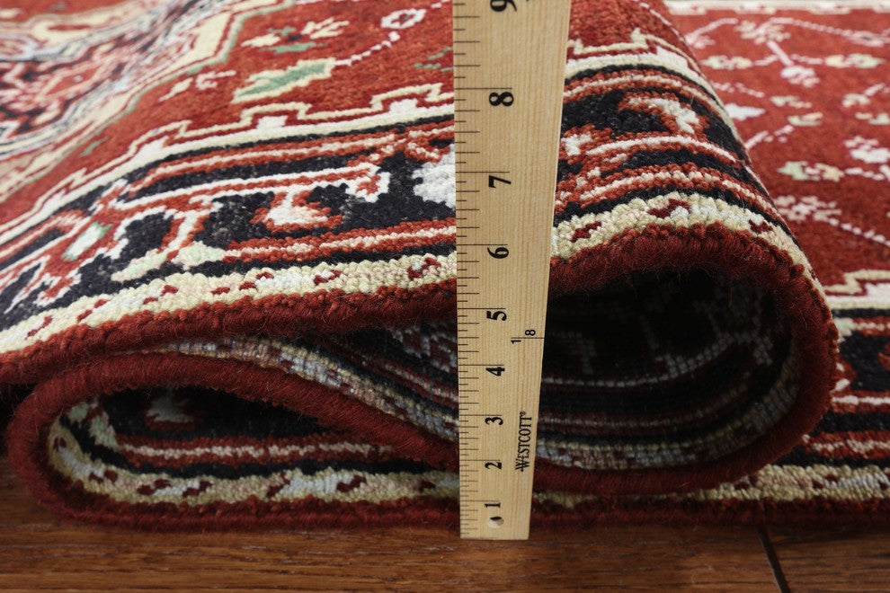 Heriz is situated in the northwestern part of Iran (Persia). Though the term covers Hand knotted rugs of numerous small villages in the area, the most beautiful Rugs were woven in Heriz itself For the last 100 years, the Heriz carpet designs have basically remained the same, with only small variations in color pallets and density of the design. The late 19th Century Rug (so called Serapis) was of fewer details and softer colors and with time designs became denser with added jewel tone color pallets. The revival of the carpet industry in the late 19th Century was based on the demand of the Western markets, with America in particular. Weavers in Heriz hand knotted were asked to make carpets inspired by the Fereghan Sarouks of higher cost for consumers of more limited budgets. Even though Sarouk carpets changed style later on, Heriz weavers stayed with the geometric pattern till now. However, Heriz was also a center of production of some of the best handmade carpets with both geometric and curvilinear floral patterns. A special heirloom wash produces the subtle color variations that give rugs their distinctive antique look.