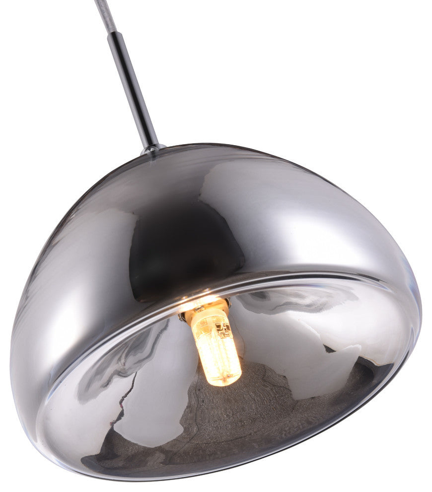 Stunning beauty at its most minimal, Reflection collection hanging fixtures lend a futuristic splendor to a kitchen, living room, or bedroom. Spherical, hemispherical, or lantern-shaped glass shades seem to float in midair from their slender steel cords. Polished and glossy as a mirror itself, this design comes in opaque or striped chrome, copper, or gold finishes.