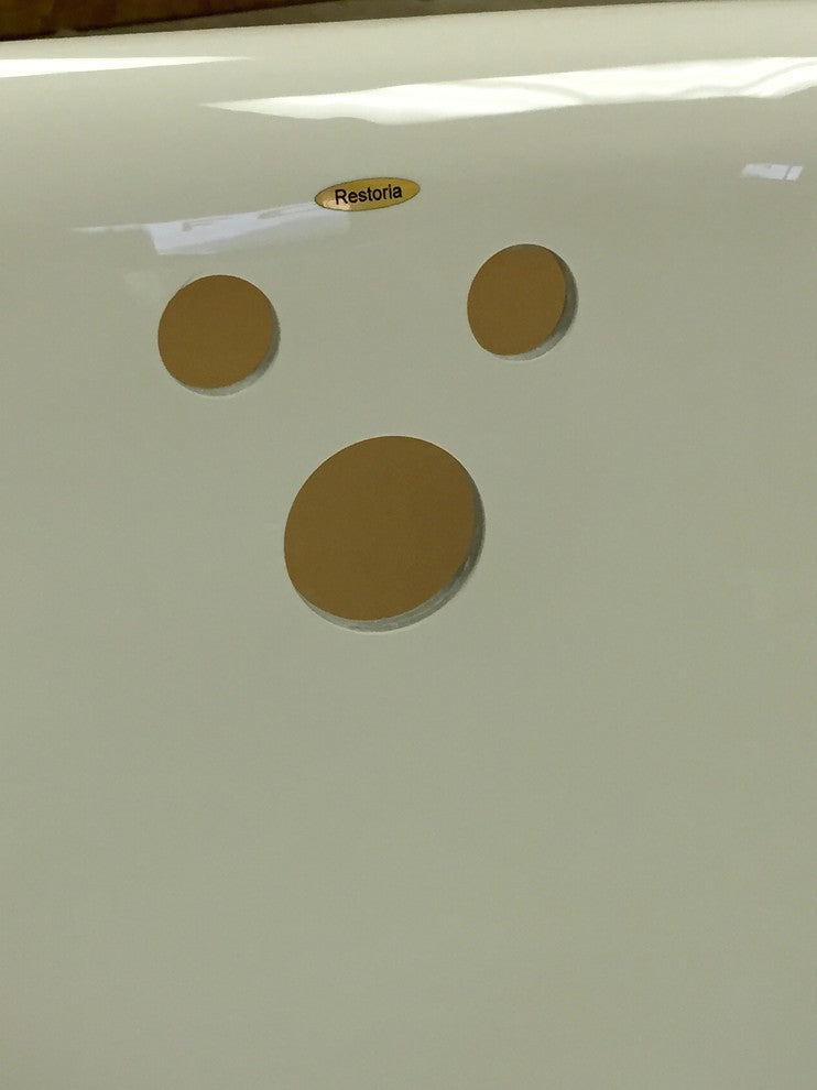 Every Restoria bathtub is 100% Made in the USA.The Regent is the original Restoria model. Classically styled after traditional Victorian cast-iron bathtubs, the Regent is 60" long with a width of 30". Limited Lifetime Warranty 60" Traditonal Roll Top Clawfoot Tub White with Oil Rubbed Bronze feet 3-3/8" Tub wall faucet drillingsBecause of our unique crafting process you can take pride in knowing that your bathtub is not like any other in the world. Restoria tubs are crafted from an acrylic shell. The shell heats with hot water, and remains hotter for longer than cast-iron tubs. This means your bath stays warmer longer, for a more relaxing, enjoyable experience.The acrylic material is also much cleaner than porcelain, fiberglass, or ceramic surfaces. This means Restoria bathtubs are easier to clean, will hold their shine, and are more resistent to germs and bacteria due to the anti-bacterial acrylic finish.Some acrylic replicas are cheaply made, and experience excessive give when filled with water. Our unique crafting process provides for extra rigidity and horizontal stability.High gloss acrylic finish on the tub''s interior with an orange peel look resin exterior finish that mimics the look of old world cast iron.Faucets and Hardware not included