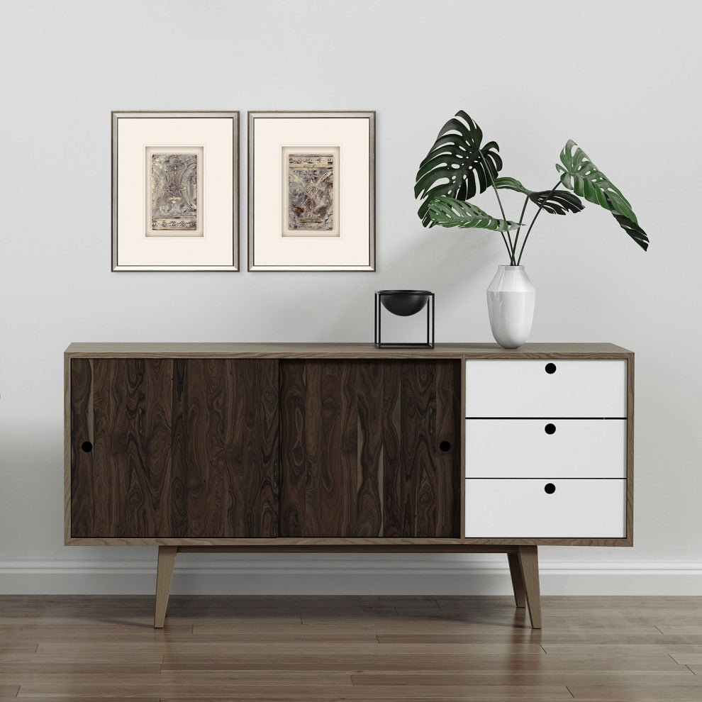 Exclusive hand cast mixed media. Framed in a silver leaf wood shadow box style with gold wash edging and black side.