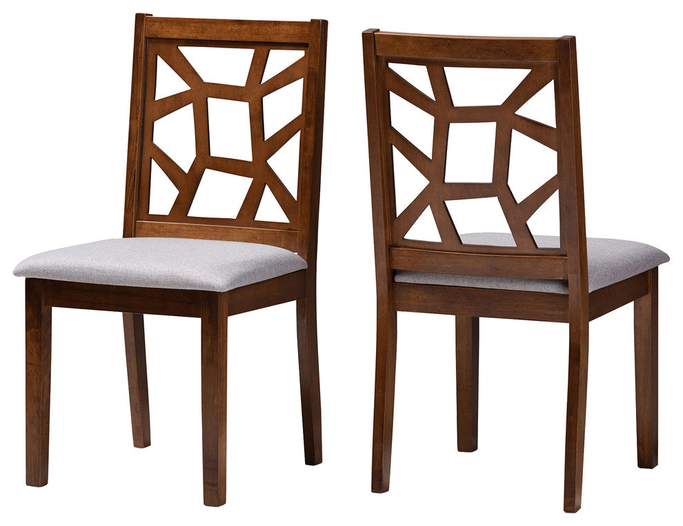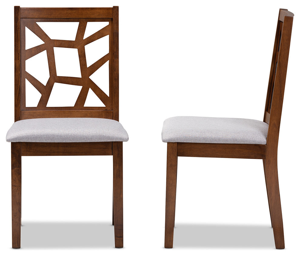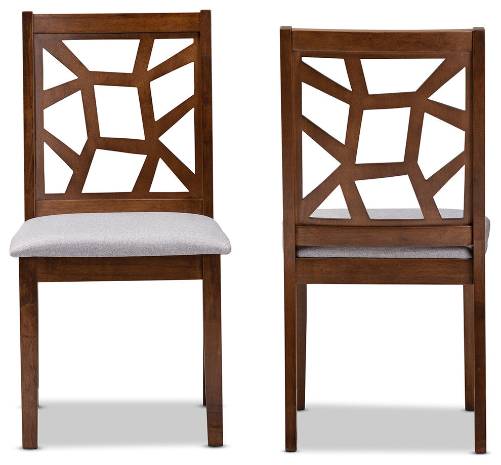 Renata Mid-Century Gray Upholstered and Walnut Brown Dining Chair, Set of 2