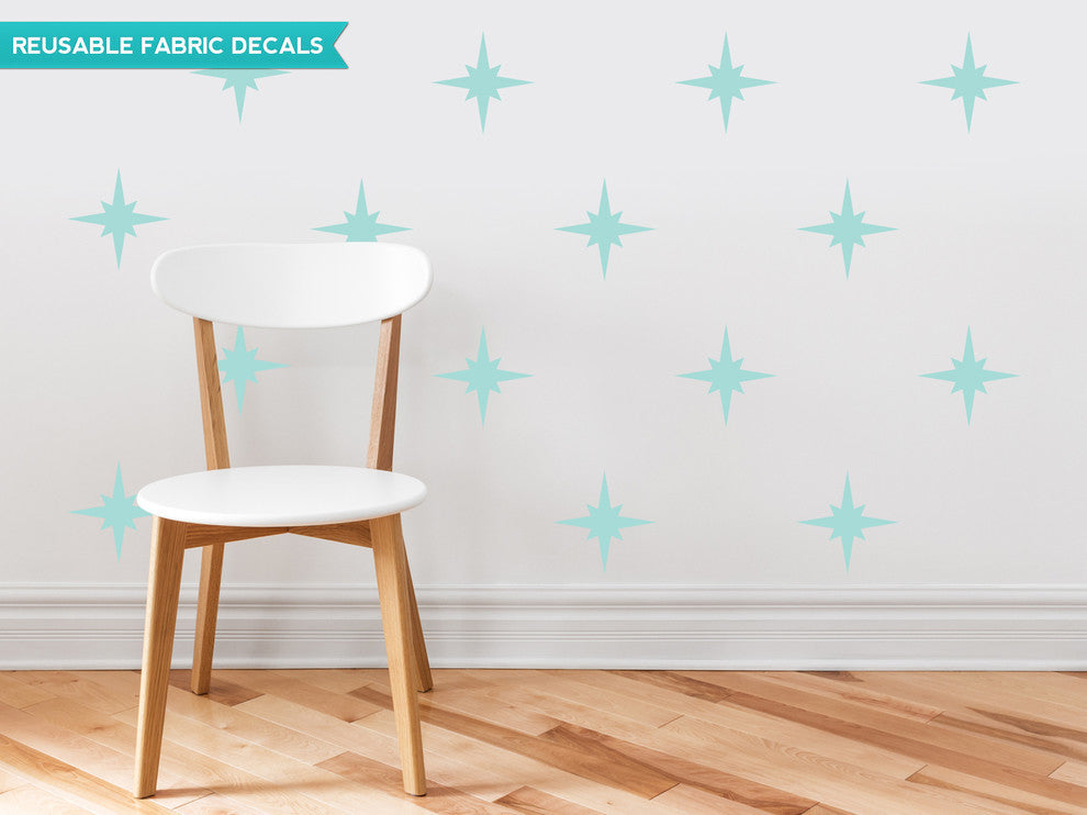 These beautiful retro star fabric wall decals will add huge personality to your wall decor. The decals are made from a fabric material that is extremely easy to apply. Just peel and stick anywhere. They are repositionable and can be removed without leaving any sticky residue.