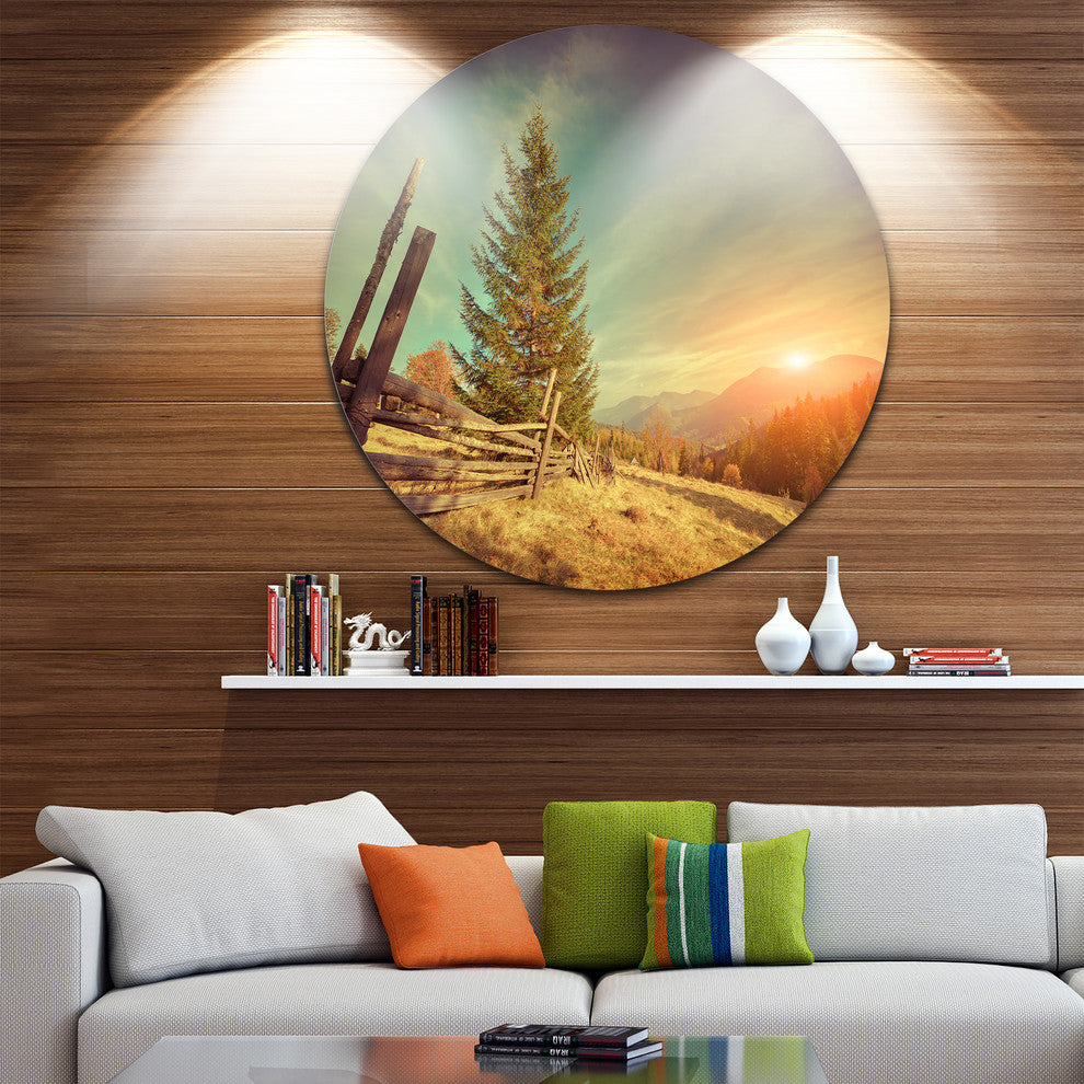 Retro Style Autumn In Mountains, Landscape Photo Disc Metal Art, 36"