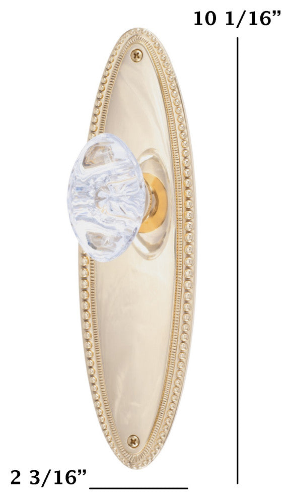 This plate represents the Colonial Revival beaded motif of the Lockwood Mfg. Co.''s Milford set of 1910. The beading on this plate goes fantastic with many of our knob & lever designs. Stunning in our Nickel or Antique Brass finish. Displayed with a Georgetown crystal knob. All finishes are hand rubbed and assembled in the USA.