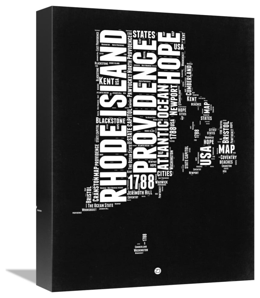 "Rhode Island Black and White Map" Fine Art Print