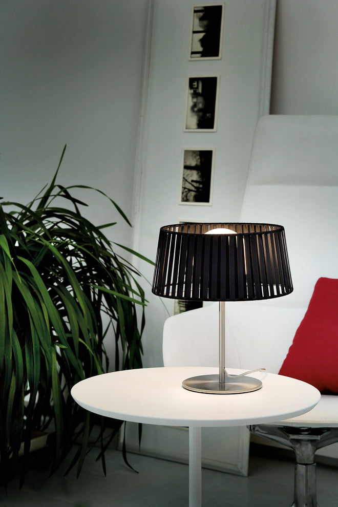 Ribbon Bed Side Table Lamp, Nickel/White Shade