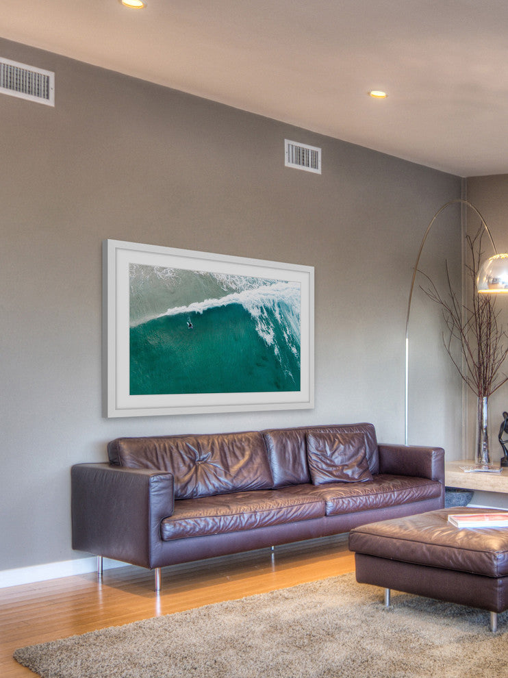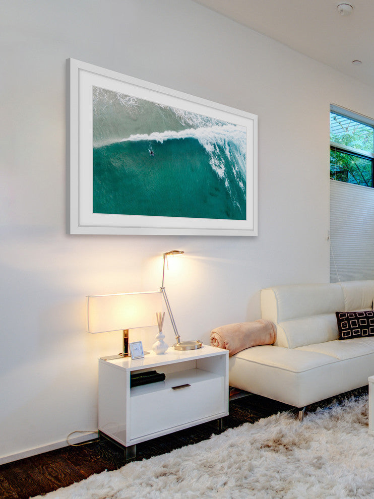 "Riding The Wave" Framed Print by Karolis Janulis features vivid tones and supple artistry. Mounted in a gorgeous frame, this 24 inch wide by 16 inch tall piece will be an exceptional addition to any room. Top quality Giclee print on high resolution Archive Paper Artwork by Karolis Janulis Professionally framed and mounted on acid free archive matte High quality durable non-warping frame Arrives ready to hang Includes a certificate of authenticity Made in the USA