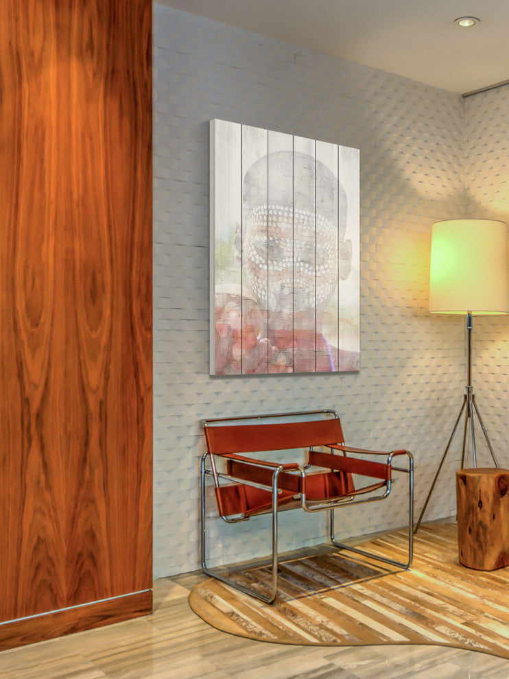 Striking and unique, the "Ritual" Print on White Wood by Parvez Taj will bring your walls to life. Printed on white wood, this 30 inch wide by 45 inch tall contemporary artwork will make a statement in any living room, dining room, or bedroom.- Fine art UV ink print on white wood by Parvez Taj- wood pieces are hand-selected by Fine craftsmen for printing- Arrives ready to hang- Includes a certificate of authenticity- Artist signature on the front