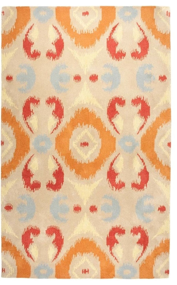 A gorgeous mixture of southwestern and transitional looks the mojave collection by rizzy home will bring a finishing touch to any home. Each rug is hand-tufted by a master artisan from india, who has learned the craft through their entire lifetime. Constructed of 100% hand-tufted wool with a cotton/latex backing this rug is sure to endure through the years to come. The serene palate of this collection enhances the hand-trimmed edges giving this collection an elegant look and feel. Luxurious to the touch, and the depth and dimension of this rug is sure to make anyone catch their breath at first glance. Committed to excellence, the rizzy home team brings together talent, knowledge and passion to create an unparalleled reputation within the home furnishings industry. With a wide assortment of product choice and combinations, rizzy home is making it easier than ever for clients to create homes and interior spaces that are honest expressions of their true personalities.Modern translations of classic southwestern designs, the rugs of the mohave collection are an urbane blend of sophisticated hues and contemporary style. Hand-tufted from a blended new zealand wool that is hand-dyed to create depth through shades of color. These spectacular rugs are full of ultra plush texture. Each rug is a masterful creation that is reminiscent of an ancient gabbeh, sought after for its deep, luxurious cut pileCollection: VolareConstruction: Hand-TuftedMaterial: 100% WoolRug Backing: Cotton CanvasPrimary Color: KhakiSecondary Color: Blue, Red, Rust, YellowPattern: IkatStyle: TransitionalPile Height: 0.60"