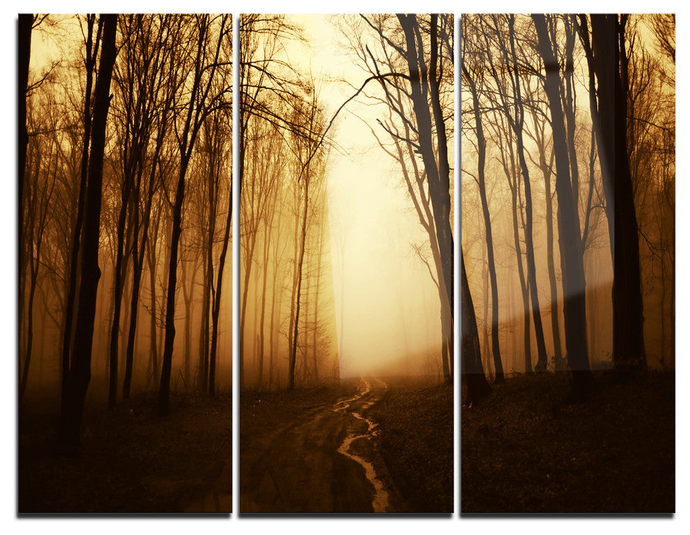 "Road in Forest With Fall Fog" Photo Metal Wall Art, 3 Panels, 36"x28"