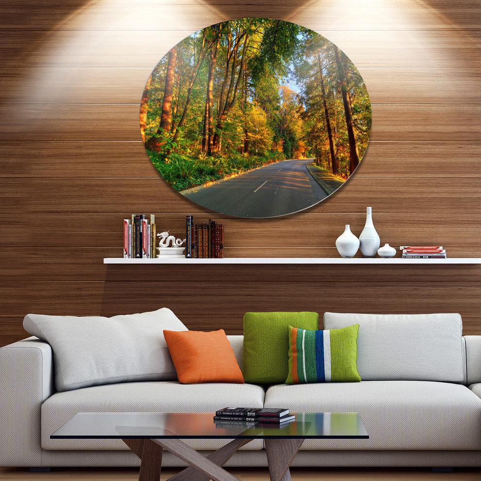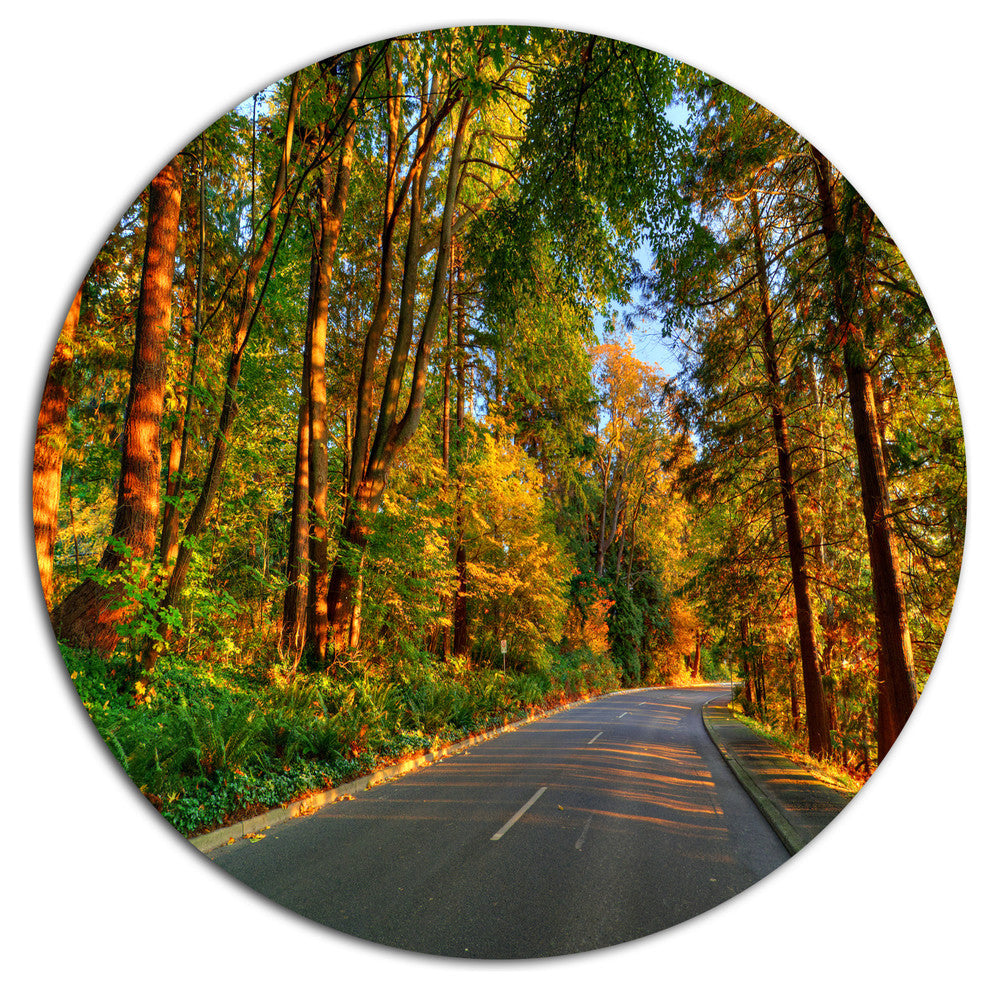 Road Through Yellow Forest, Landscape Art Round Wall Art, 11"
