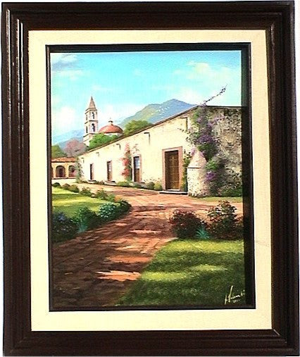 The sound of the church bells are calling for a mass. It is time to move on and go through the shades in this fresh-looking road. The shades and light exposed in this oil painting is so real that you will be inmersed into it in no time. This Mexican Fine Oil Painting is a masterpiece by Luis Valentin, contemporary Mexicanist oil painter, the shades and light combination are just perfect.The frame is rustic pinewood, giving a touch of age and is brown finished. It measures 41 height by 33" wide, 1.5" depth and 3" thickness. The canvas itselt measures 30.5" x 23" and the white frame measures 2.5". This contemporary oil painting will be a highlight in your hallwall, living room or any place you want to hang it! A unique gift for your loved ones and for yourself."Hand-hammered and mold-cut to perfectionHandcrafted by Mexico''s Finest ArtisansWe include 1" long brown screws in all of our hammered copper switch plates