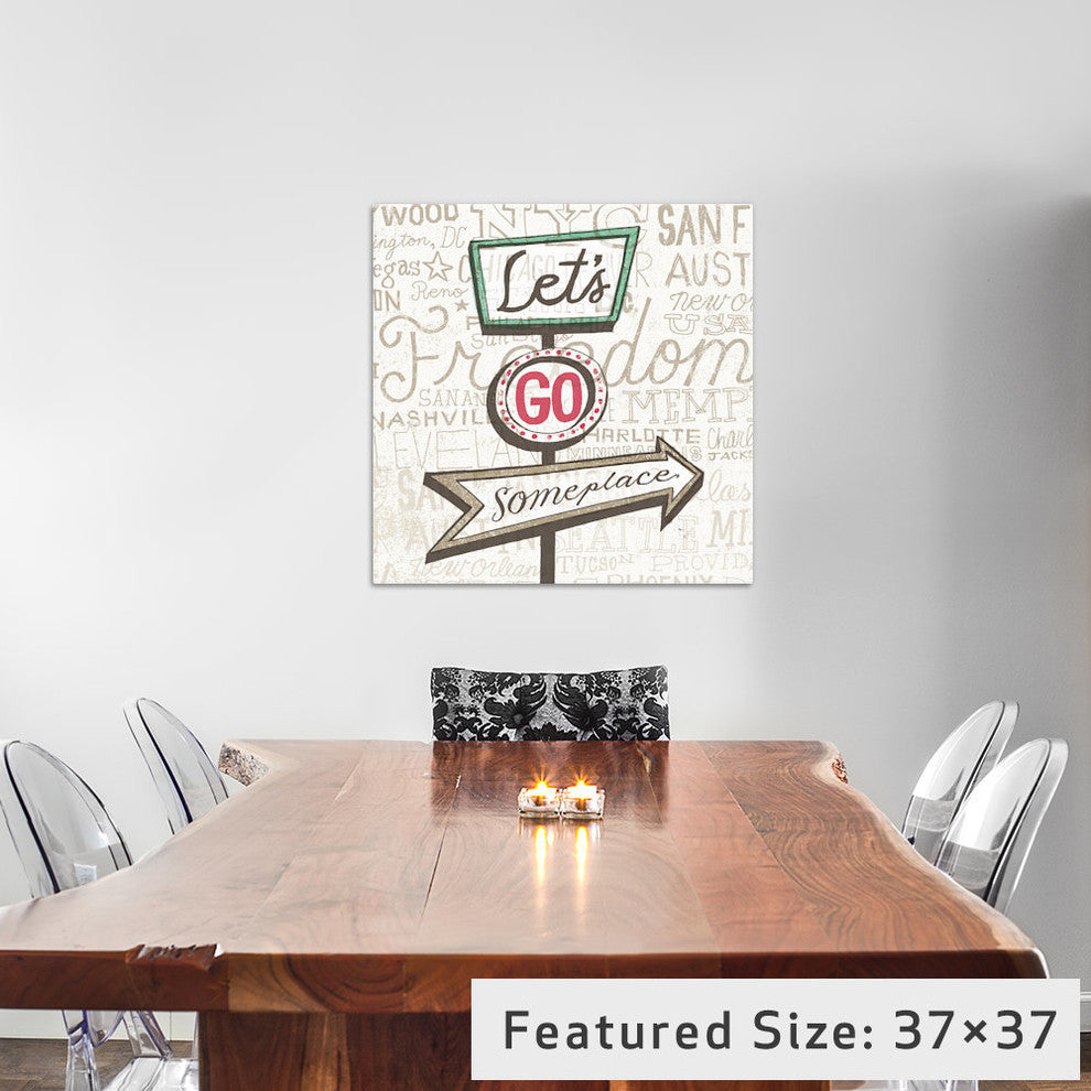 "Road Trip Route Lets Go Someplace" by Oliver Towne, 37x37x1.5
