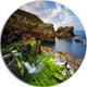 Rocks And Waterfall In Spanish Coast, Photo Round Metal Wall Art, 11"