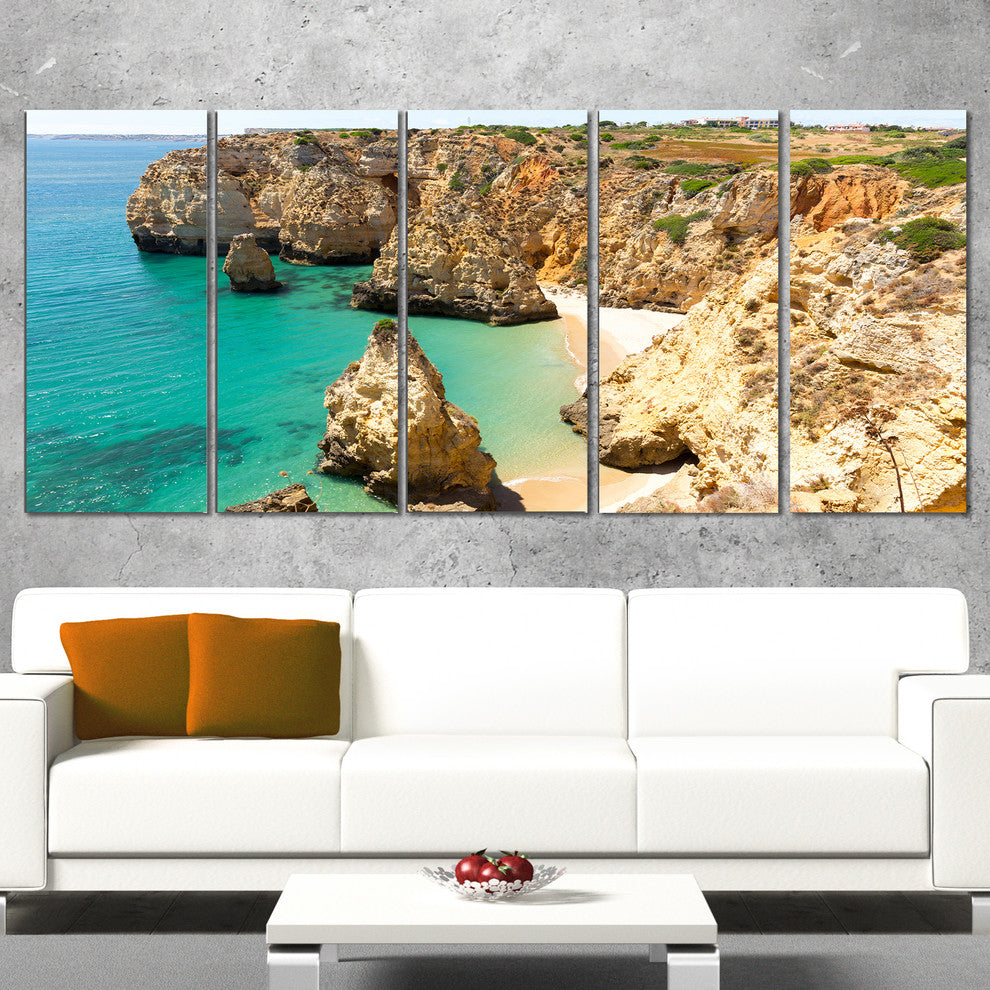"Rocky and Rough Portugal Bay" Seashore Wall Art, 60"x28", 5-Panels