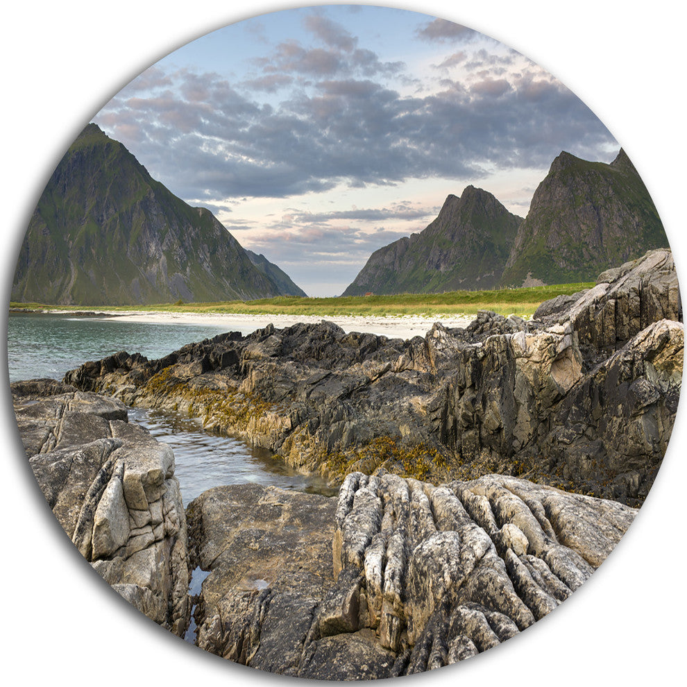 Rocky Coastline On Lofoten, Landscape Photo Round Wall Art, 36"