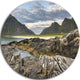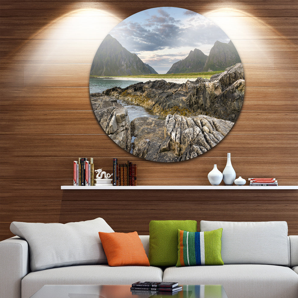 Bring Contemporary Abstraction to your home with this large Circle Metal wall art. This Rocky Coastline on Lofoten Metal Artwork makes it the focal point of any room or office.