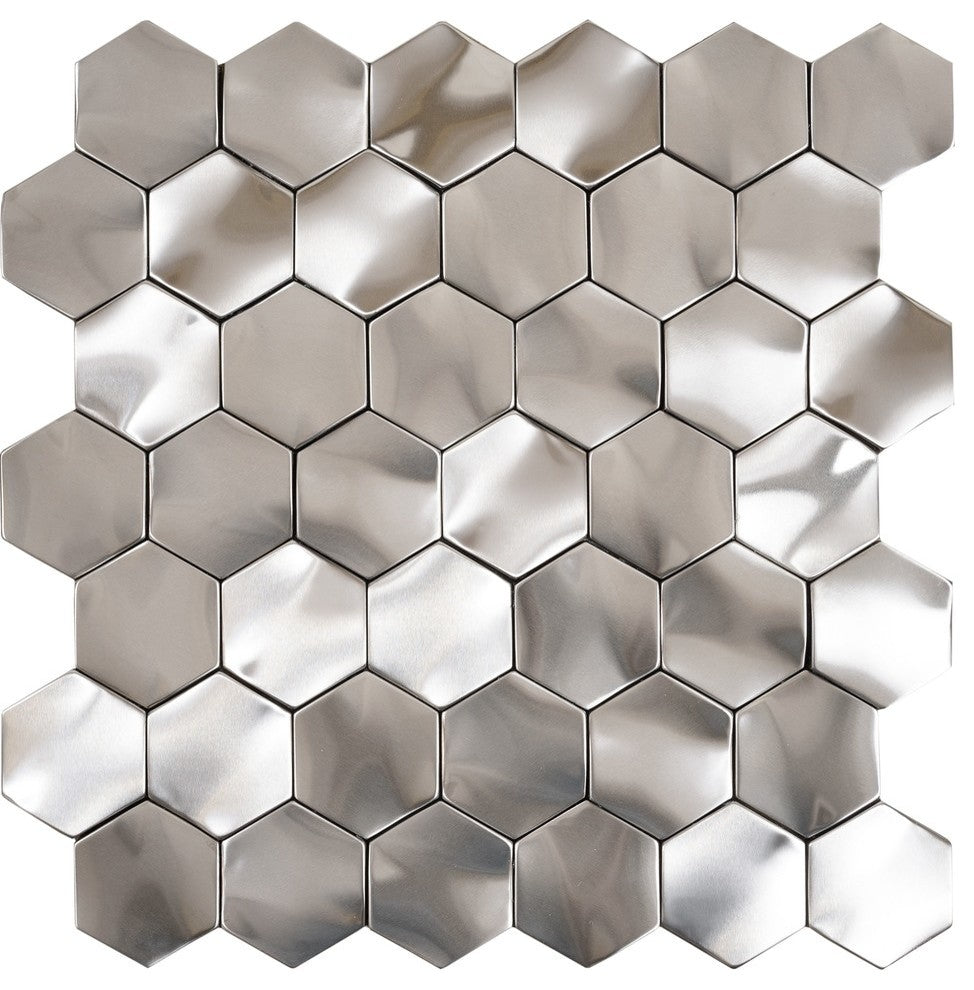 Rolling Hexagon Metallix Mosaic, Stainless Steel/Gunmetal, Sample