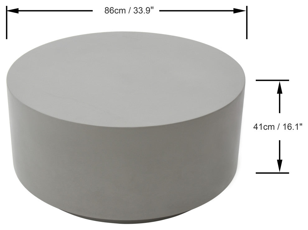 Elevate your living space with the Elementi Home Rome 34" GFRC Round Coffee Table. With its elegant matte texture, this coffee table adds a touch of sophistication to any room. Crafted from durable GFRC material, it''s built to last and offers a spacious tabletop for your coffee and more. Redefine your living space with the Rome Coffee Table''s contemporary charm. - Elevate your surroundings with an air of timeless romance and refined elegance courtesy of our exquisite coffee table. - Inspired by the iconic design of Rome''s columns, our round-shaped table exudes timeless elegance with its smooth matte texture. From the intimate ambiance of your living room to the serene tranquility of your backyard oasis, this table seamlessly complements any seating arrangement, adding an understated yet captivating charm to your space. Meticulously crafted from sturdy concrete, its minimalist sophistication and impeccable taste elevate every detail, while the distinctive texture evokes nature''s rugged allure in a subtle whisper of style. - As the sun sets softly on your outdoor retreat or dances gently through your window, let this piece be the epitome of your elegant lifestyle, effortlessly holding court next to your beloved chat set or sofa, offering a haven for cherished snacks and chilled beverages in an ambiance of refined grace. - Elevate your space with our sleek accent table, blending Scandinavian simplicity with contemporary flair. Its clean lines and minimalist aesthetic make it a plush addition to any modern décor. - Inspired by the timeless design of Rome''s columns, our table boasts a rich and sophisticated texture that adds character to any setting. Whether it''s your backyard oasis or indoor sanctuary, this table adds a touch of personality to your space. - Crafted from advanced GFRC (Glass Fiber Reinforced Concrete), our concrete table is engineered to withstand the elements. From windy days to rainy nights, its durable construction ensures stability and longevity. - Whether you''re unwinding in your living room or entertaining guests on the patio, our table seamlessly adapts from coffee table to dining companion. Its flexible design ensures suitability for any space prioritizing both style and functionality. - Designed for hassle-free enjoyment, our table arrives fully assembled and ready to use straight out of the box. Say goodbye to complicated assembly instructions and hello to effortless maintenance - its smooth surface is easy to clean, keeping your space looking pristine with minimal effort.