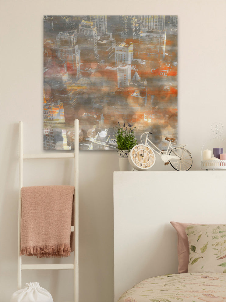 Striking and unique, the "Rooftops" Print on Canvas by Parvez Taj will bring your walls to life. Printed on canvas, this 48 inch wide by 48 inch tall contemporary artwork will make a statement in any living room, dining room, or bedroom.- Fine art canvas print by Parvez Taj- Professionally hand stretched- Gallery wrapped in sustainable, non-warping wood- Arrives ready to hang- Made in the USA- Includes a certificate of authenticity- Artist signature on the front