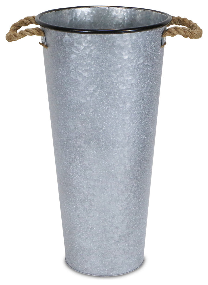 Enhance your garden or patio space with the Rope Handle French Metal Planter. Simple yet charming, the Rope Handle French Metal Planter is sleek in design and the perfect addition to your outdoor space. Crafted from brushed galvanized metal, the Rope Handle French Metal Planter features natural rope side handles and a slim tapered shape. Whether you utilize this garden planter for storage, or simply as a decorative accent piece, the Rope Handle French Metal Planter will effortlessly elevate your garden decor. The Rope Handle French Metal Planter is not intended for use with live plants without a plastic liner.