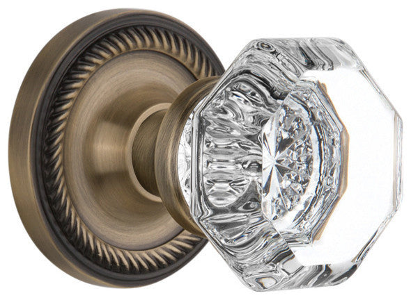 Rope Rosette Passage Waldorf Door Knob, Antique Brass