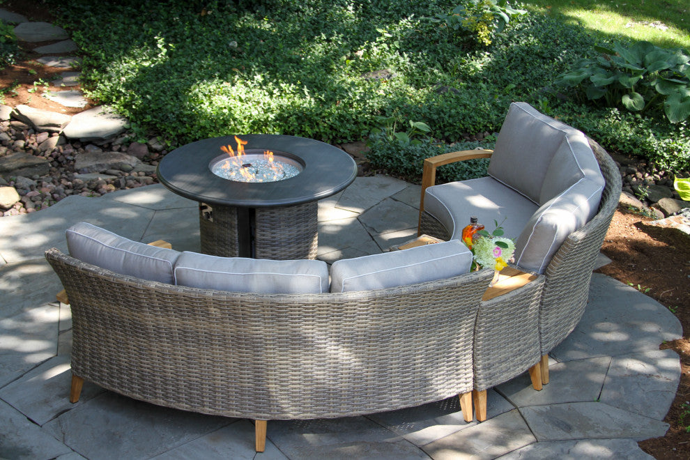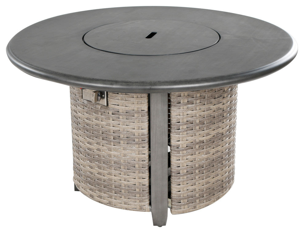 Create the perfect outdoor gathering with this Grey Wicker Round Fire pit. This fire pit''s curved design makes it ideal for patios with round sectionals and armchairs, allowing you to create a stylish outdoor lounge. This is made with HDPE all-weather wicker handwoven around powder-coated aluminum frames.What''s Included?1 fire pit LidPropane adapter kitDecorative glass stonesTabletop rain coverFeaturesHidden propane shelfAdjustable flameProduct Details Materials: Powder-coated aluminum and HDPE all-weather wicker Dimensions: 44" W x 44" D x 26" H Weight Capacity: 150 lbs. Color: Grey Wicker Caution - Proper Installation and Usage Essential: This outdoor gas fire pit is designed for recreational use. Adhere to the following safety guidelines to mitigate the risk of fire, injury, or property damage. Ensure the fire pit is placed on a stable, non-combustible surface. Supervise the fire pit diligently when in use and never leave it unattended. Keep children and pets at a safe distance.Risk of Burns, Gas Leaks, and Asphyxiation: Operating this gas fire pit carries inherent risks, including burns, gas leaks, and asphyxiation. Exercise caution when lighting, adjusting, or extinguishing the flames. Ensure proper ventilation during usage to prevent the accumulation of harmful gases. Never use in enclosed or poorly ventilated spaces. Periodically inspect gas lines, connections, and burners for leaks and damage. Follow all safety instructions and installation procedures to prevent serious injuries, gas-related accidents, or health hazards.