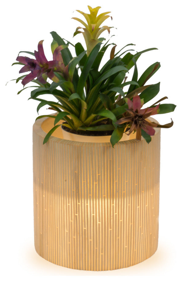 Round Planter with Wicker floor lamp is one of a kind of decorative lamp design for art decor as well as planter in mind. It accommodates different type of vase planter to enhance the beauty of the foliage or flowers. The wicker stripe is hand cut and pieces together individually. The glowing lights shine thru the gaps of the wicker creating a unique natural pattern.Note: Plant Not Included Specification:Material:Fiberglass with wicker decorationType: Indoor LampColor: Natural Wicker ColorBulb Base: E26/E27 Max. Watts: 60 WattsBulb Type: Regular or Standard E27 base light bulb (Bulb not included)Voltage Rating: 110V - 220VDimension: 15.8" Diameter and 17.7" HeightWeight: 9.2 Lbs.